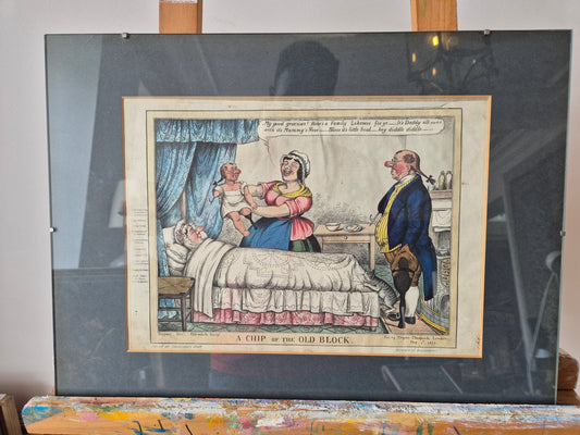 Alte Grafik Karikatur Szene Cheapside London A Chip of the Old Block