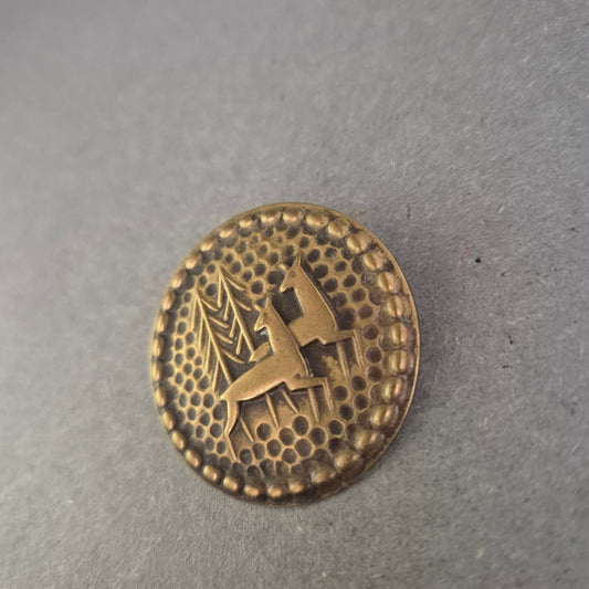 Alte Jagd-Anstecknadel – Rundes Motiv mit Hirschen & Bäumen