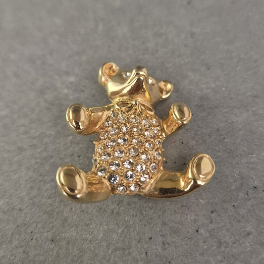 Glitzernde Teddybär-Brosche – Vergoldet mit Strasssteinen