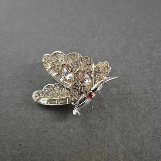 Glitzernde Vintage-Brosche Schmetterling – Silberfarben mit Strass