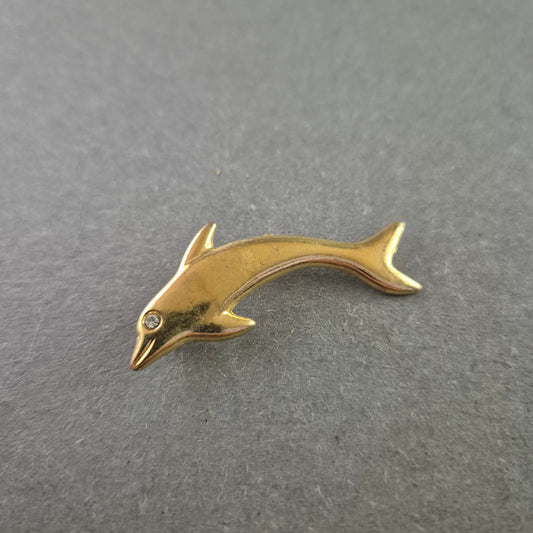 Goldfarbene Delfin-Brosche mit Strassstein als Auge