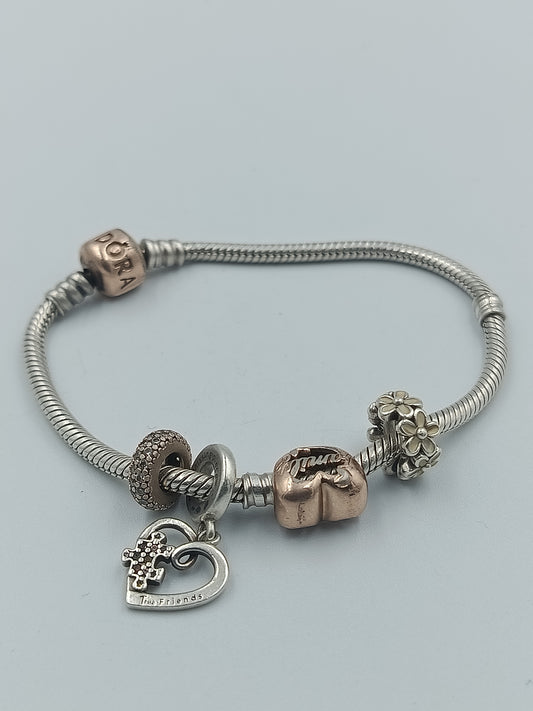 Pandora Armband mit Charms in Silber & Roségoldoptik