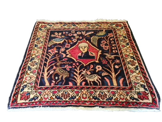 Antiker Handgeknüpfter Perser Teppich Sarough Orientteppich Bilderteppich 75x79cm