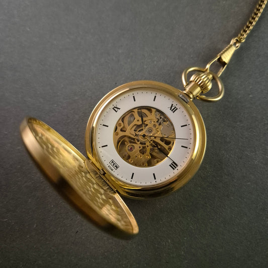 TCM Taschenuhr – Eleganter Skelettmechanismus mit Vergoldung