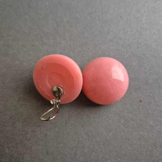 Vintage Ohrclips in Rosa – Runde Cabochons mit Retro-Flair