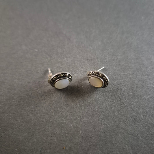 Vintage Silber Ohrstecker mit Opalit und Markasit – Zeitlose Eleganz
