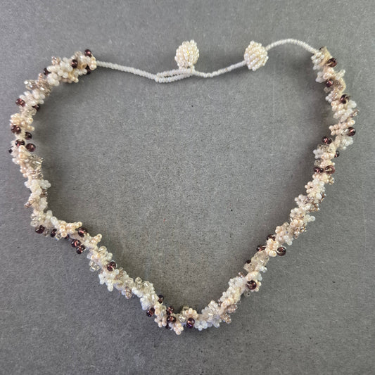 Zarte Perlenkette mit Glasperlen – Eleganter Look in Lila und Weiß