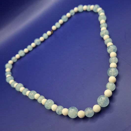 Zarte Kette aus weißen und blauen Aquamarin-Perlen