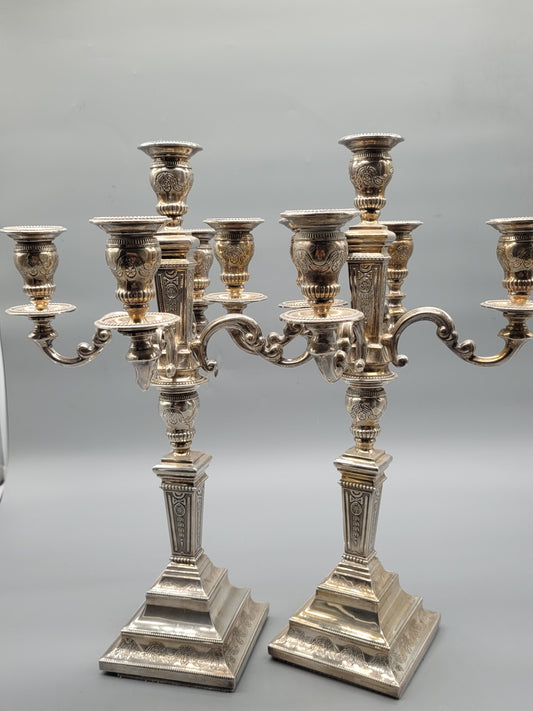 Zwei Neoklassizistische Kerzenhalter 925er Silber 5-Flammig 2800g