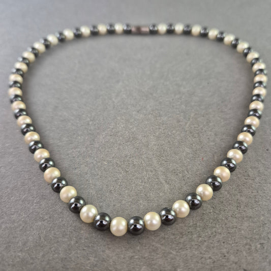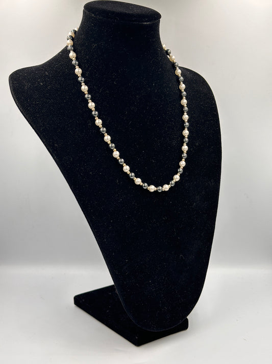 Zweifarbige Perlenkette – Schwarz & Creme mit Magnetverschluss