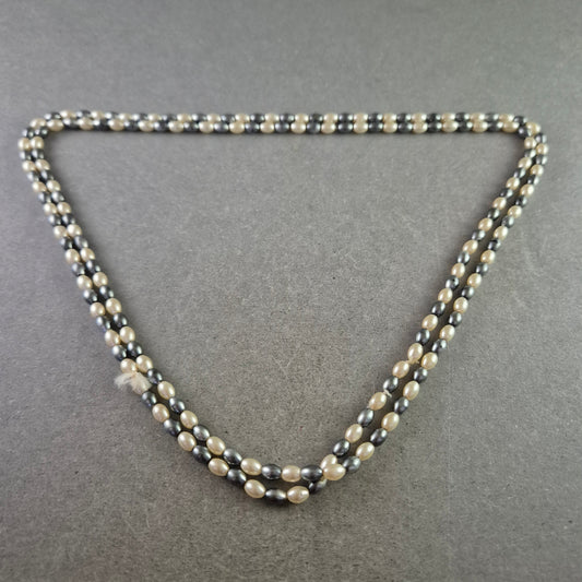 Zweireihige Perlen Kette – Eleganter Kontrast in Creme und Grau