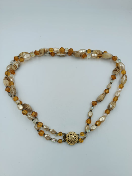 Zweireihige Halskette mit Glasperlen und vergoldetem Zierschloss