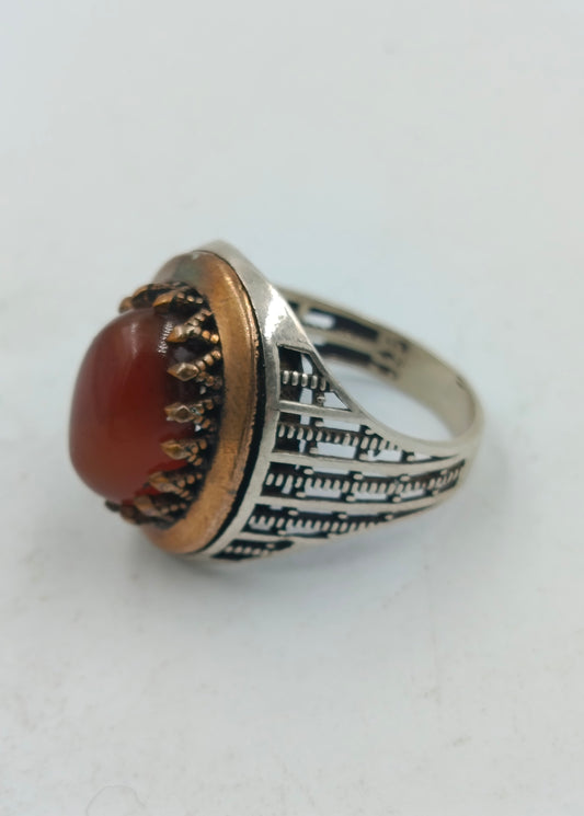 925 Silber Herrenring Brauner Stein Antik Gold Akzent Gr60 Orientalisch