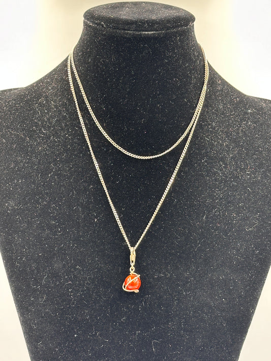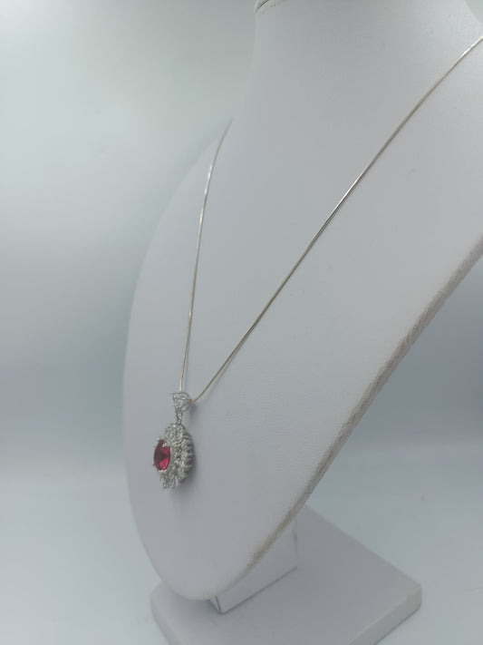 925 Silber Halskette mit rotem Stein und Zirkonia