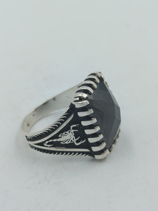 925 Silber Herrenring mit Schwarzem Facettierten Stein Gr65 Modern Elegant