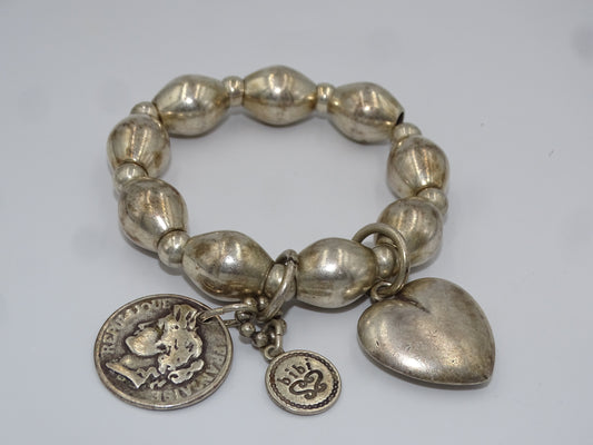 Bibi Bijoux Silvertone Massivarmband mit Herz- und Münzanhänger