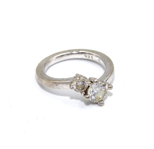 925 Silber Ring mit zwei herzförmigen Champagner Steinen