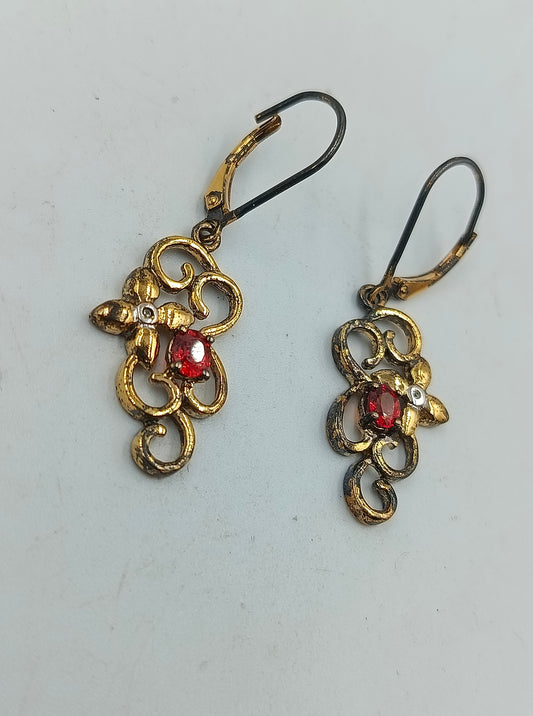 925 Silber vergoldete Ohrringe mit rotem Stein Vintage Stil