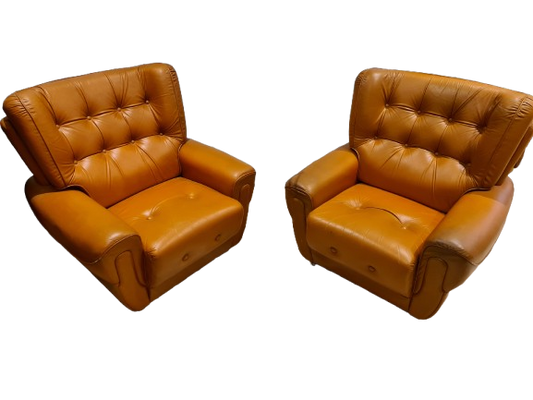 Leder Loungesessel 2er Set mit Ottomane Sessel 90cm