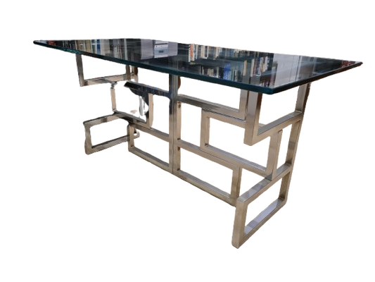 Mid Century Architektonischer Esstisch Tisch Glas Chrom Gestell 160cm