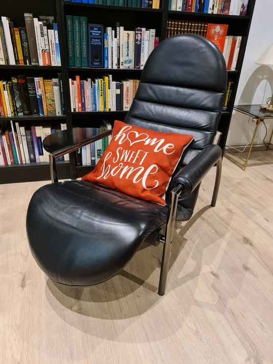 Easychair Liegestuhl Design Sessel Leder Stahl mit Ablage 105cm