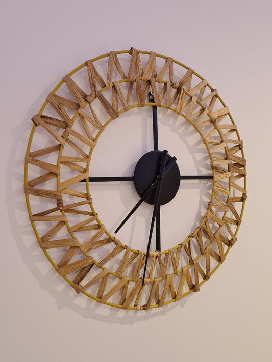 Wanduhr Uhr Rattan Metall Modern Vintage 60cm