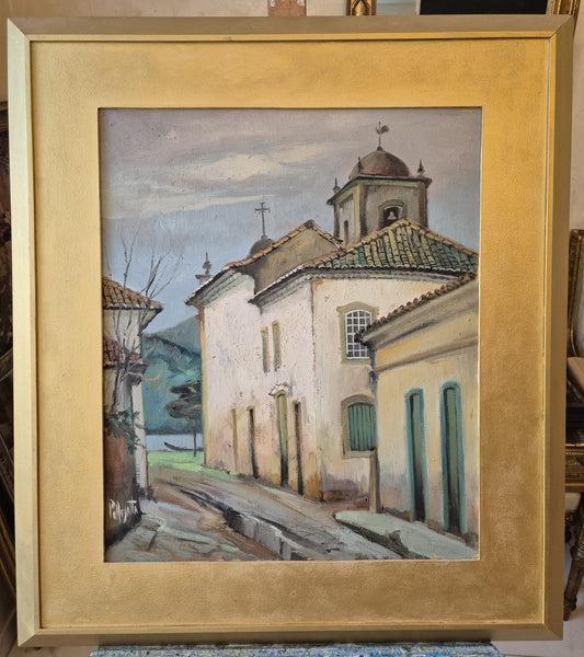 Ölgemälde Landschaft Brasilien Omar Pellegatta (1925-2001) Dorfkirche 78x68