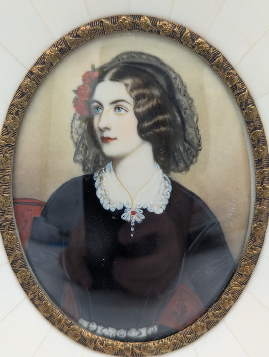 Lupenmalerei Miniaturmalerei Adlige Dame feine Porträt Miniatur im Rahmen