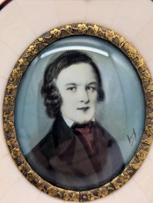 Lupenmalerei Miniaturmalerei feines Herrenportrait im klassischen Rahmen