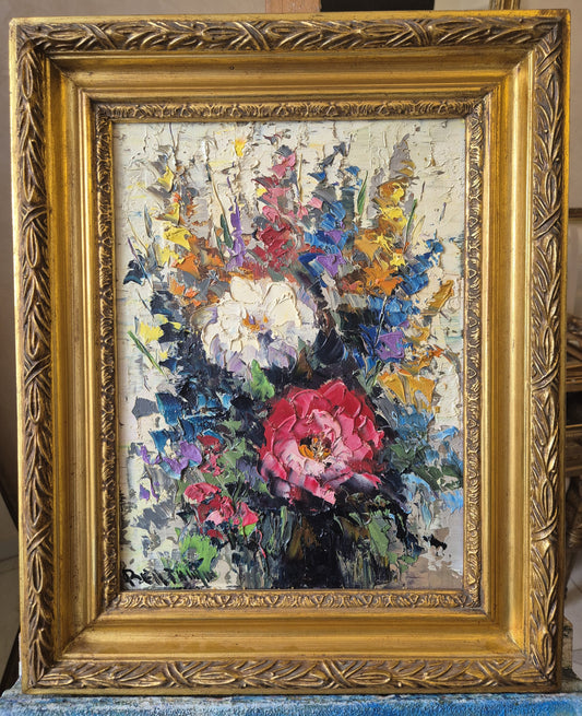 Ölgemälde Stillleben Blumen Genevieve Berthiyn (XX) Gerahmt 55x45cm