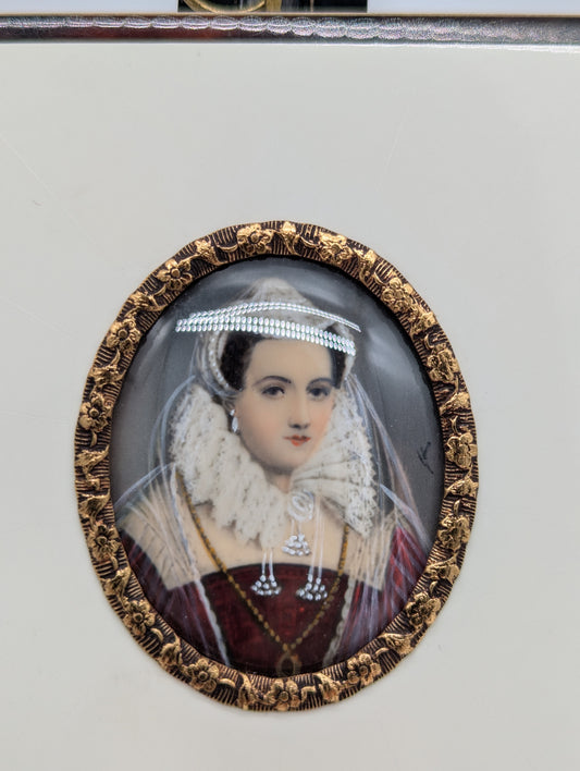 Lupenmalerei Miniaturmalerei Maria Stuart feine Porträt Miniatur im Rahmen