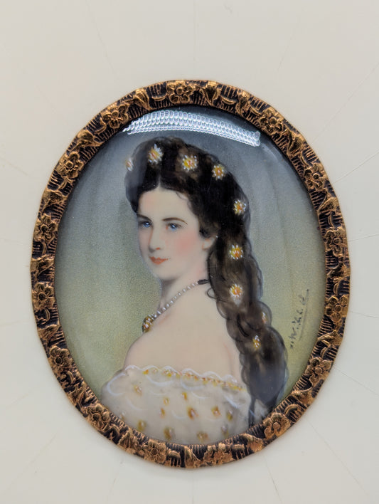 Lupenmalerei Miniatur Kaiserin Elisabeth Sisi Porträt Miniatur im Rahmen