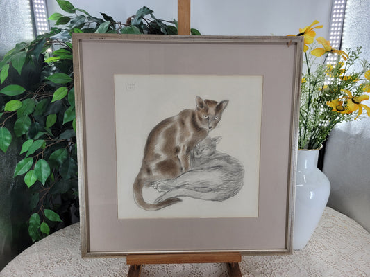 Grafik 2 Kuschelnde Katzen Harmonische Darstellung gerahmt 58x58cm