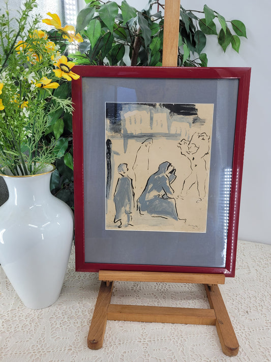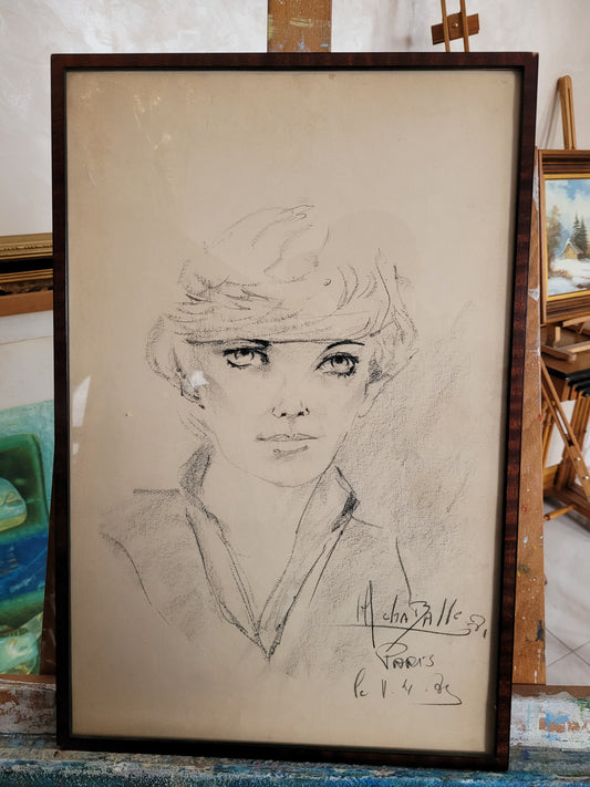 Französische Schule (XX) Zeichnung Portrait Dame Paris Handsigniert