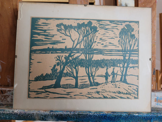Grafisches Bild, Lithographie Expressive Landschaft 25x30cm
