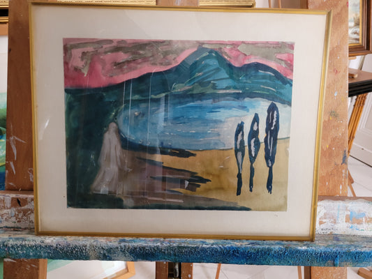 Moderne Malerschule (XX) Original Farbradierung Surrealistische Szene