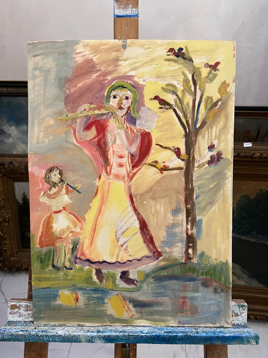 Moderne Malerei (XX) Ölgemälde Studie auf Leinwand Flöten in der Natur