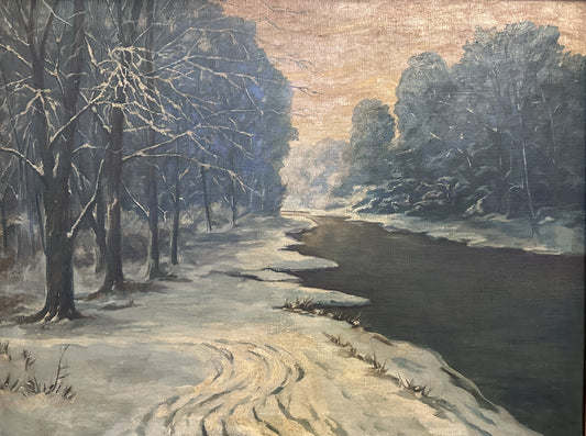 Deutsche Schule (XX) Großes Ölgemälde Stimmungsvolle Winterlandschaft