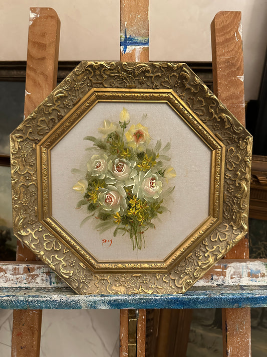Deutsche Schule (XX) Ölgemälde Blumenstillleben Handsigniert 36x36cm