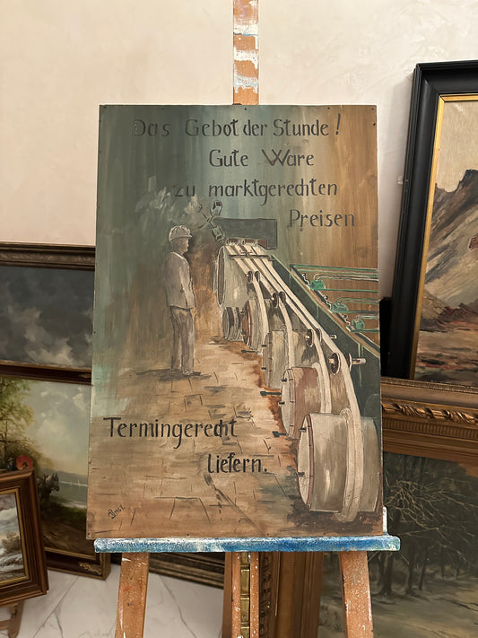 Deutsche Schule (XX) Ölgemälde Altes Industrie Werbeplakat Handsigniert