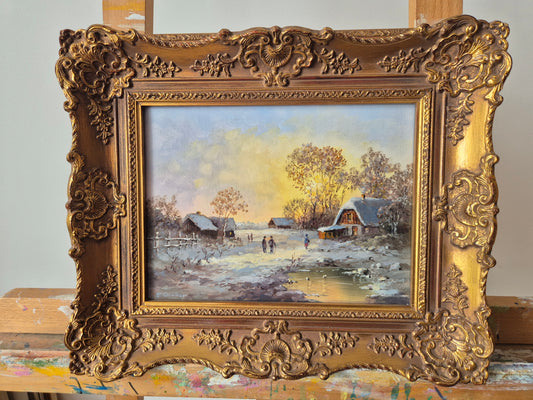 Münchner Schule (XX) Ölgemälde Handsigniert Winterlandschaft 24x34cm