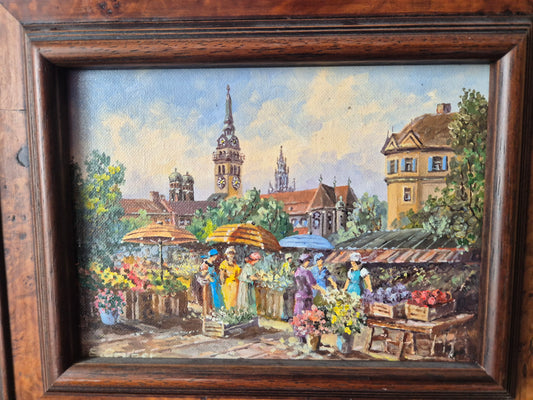Rudolf Budde (geb. 1953) Ölgemälde Herbstlicher Marktplatz Blumenmarkt