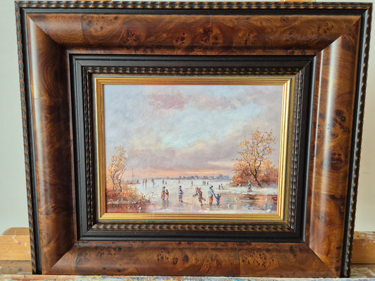 Ernst Gruber (1935) Ölgemälde Winterliche Szene mit Schlittschuhläufern