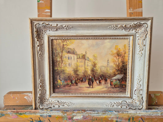 Ernst Gruber (geb. 1935) Ölgemälde Buntes Treiben auf dem Marktplatz