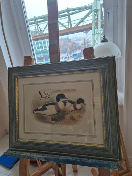 Entenpaar Vintage Grafik Lithographie 1980er Gerahmt hinter Glas