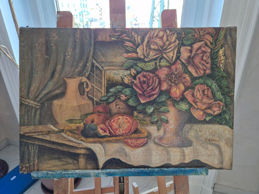 Deutsche Schule (XIX-XX) Ölgemälde Handsigniert Stillleben Moderne 40x60