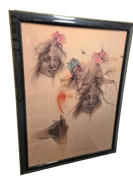 Grafik mit dem Titel Frauen, auf der Rückseite signiert und datiert 1982