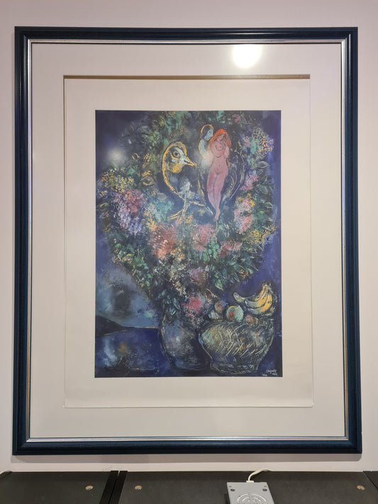 Marc Chagall 1949 Kunstdruck Gemälde Blumenstrauß und Obstkorb gerahmt 100x85cm