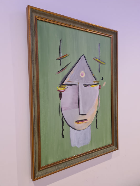 Abstrakte Kunst Öl Gemälde Portrait Holzrahmen Modern 78x58cm