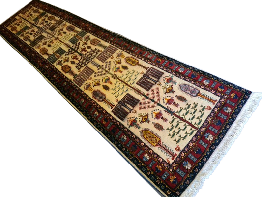 Antiker Feiner Handgeknüpfter Perserteppich Bachtiar Orientteppich 400x89cm